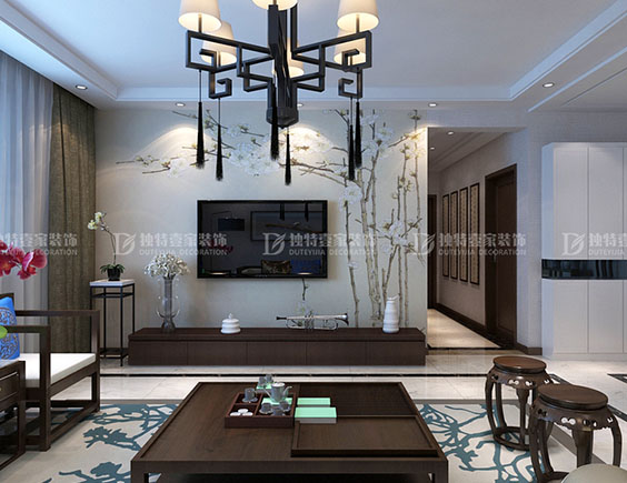 晋阳峰景159平三室两厅新中式风格装修效果图